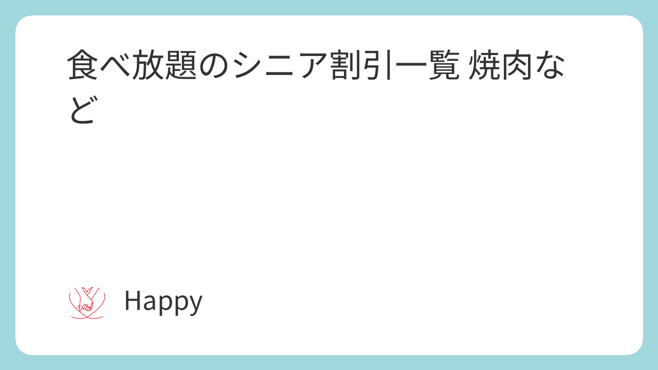 | あみやき亭 | 60歳以上 | あみやき亭: 65歳以上のお客様は食べ放題が500円割引 あみやき亭プラス: 60歳以上のお客様は食べ放題が400円割引 |