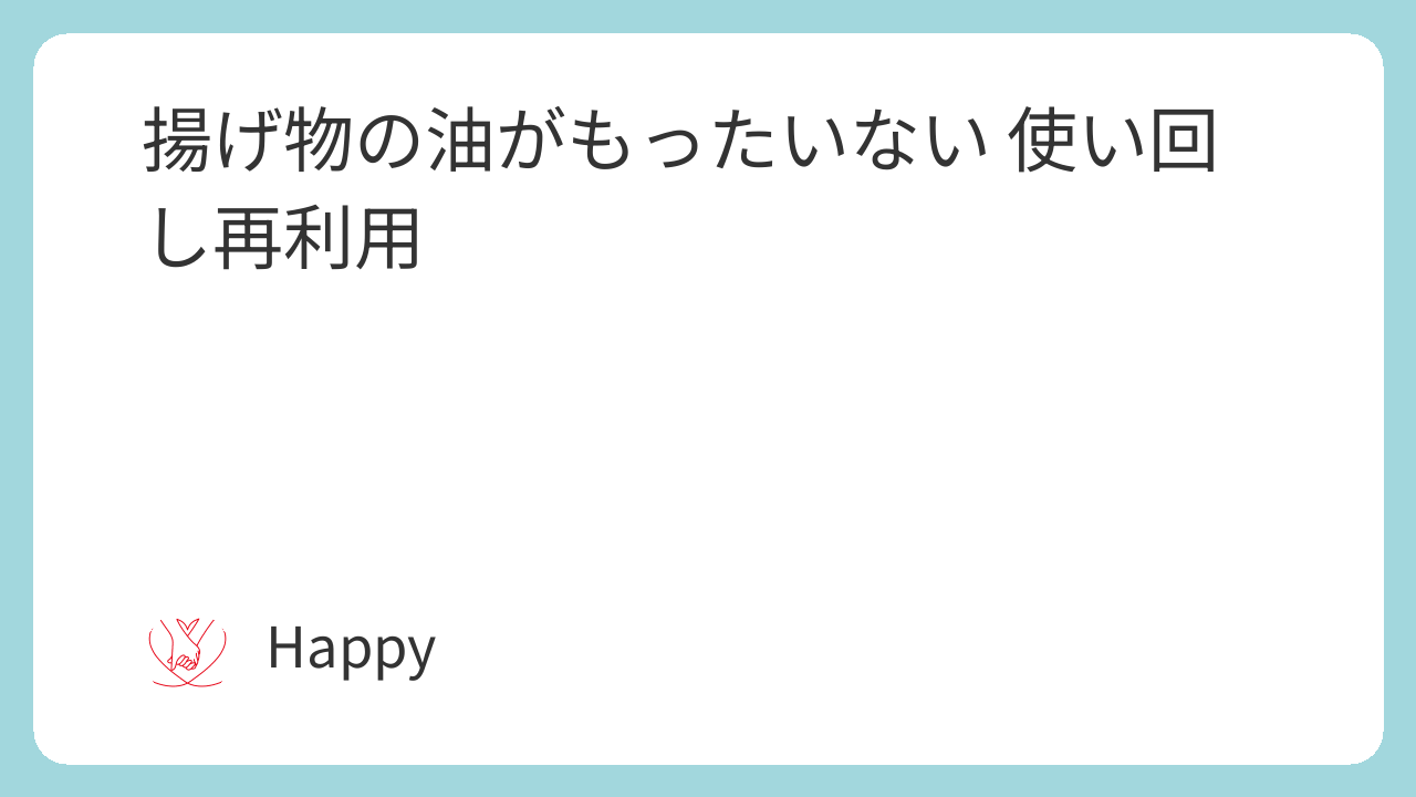 「揚げ物の油、もったいない」というお気持ち、とてもよく分かります!大量の油を使う上、一度使うと酸化したり、食材のニオイが移ったりして、捨てるしかないとなると、経済的にも環境的にも気になりますよね。
