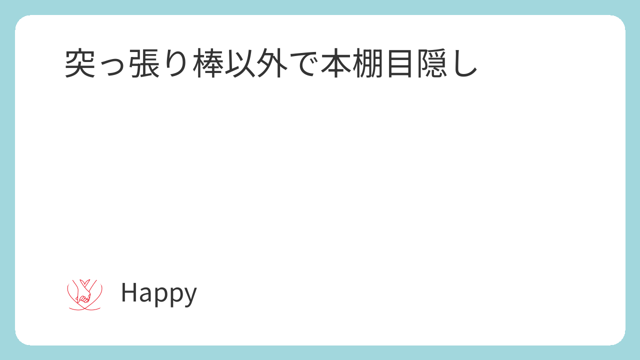 本棚の目隠しで突っ張り棒以外をお探しですね!様々な方法がありますので、ご希望の目隠しの度合い、予算、DIYスキルに合わせてご検討ください。
